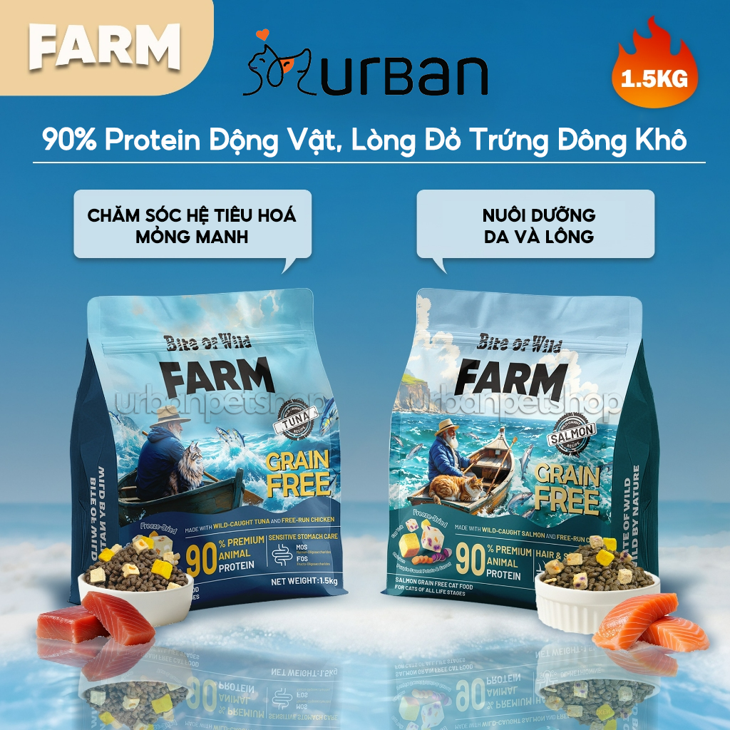 Bite Of Wild Farm Salmon Recipe Grain Free là dòng thức ăn hạt cao cấp đến từ thương hiệu Petour International, được thiết kế đặc biệt với cá hồi đánh bắt tự nhiên (Wild-Caught Salmon) và thịt gà thả tự do (Free-Run Chicken), giúp duy trì sức khỏe toàn diện cho mèo.