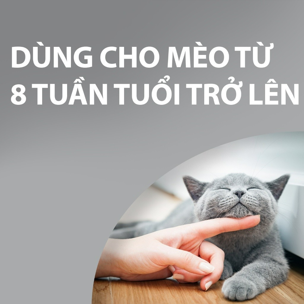 Thích hợp cho mèo ở mọi giống, trên 8 tuần tuổi.