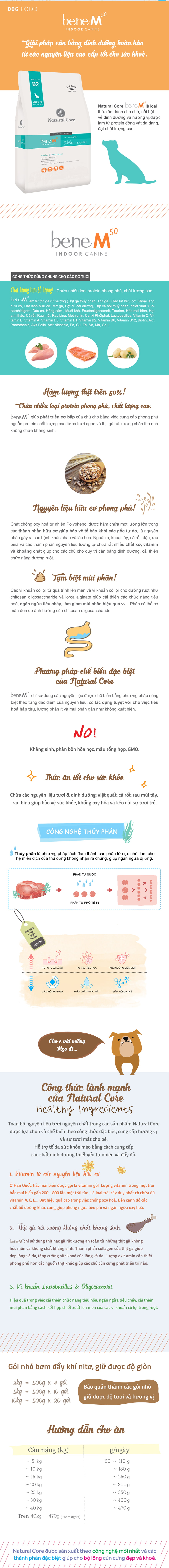 ☑️ Thức ăn hữu cơ Natural Core Bene M50 là sản phẩm dinh dưỡng phù hợp với những chú chó được nuôi trong nhà. Được chế biến từ từ thịt gà và cá hồi, kết hợp các loại thực vật hữu cơ mang đến nguồn protein dồi dào cùng các vitamin cần thiết giúp ổn định và cân bằng chế độ dinh dưỡng cho chó.