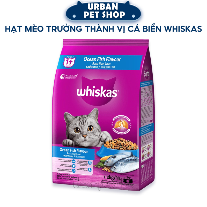 Nhu cầu dinh dưỡng của mèo thay đổi theo từng giai đoạn tăng trưởng. Cũng giống như pate mèo, Thức Ăn Khô Whiskas® Adult 1+ Vị Cá Biển Cho Mèo Trưởng Thành từ 1 tuổi là sản phẩm cân bằng, đáp ứng nhu cầu dinh dưỡng thay đổi của mèo ở mọi giai đoạn. Thức ăn khô cho mèo Whiskas® không chỉ chứa 41 dưỡng chất thiết yếu cho mèo giúp mèo duy trì sức khỏe, thức ăn khô cho mèo Whiskas® vị cá biển còn có: