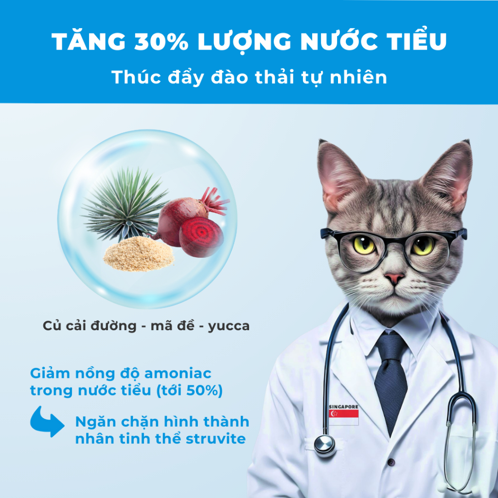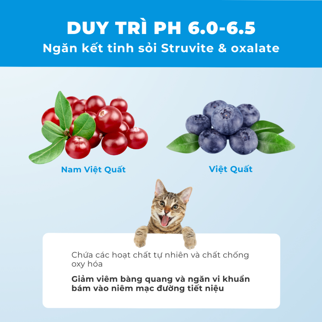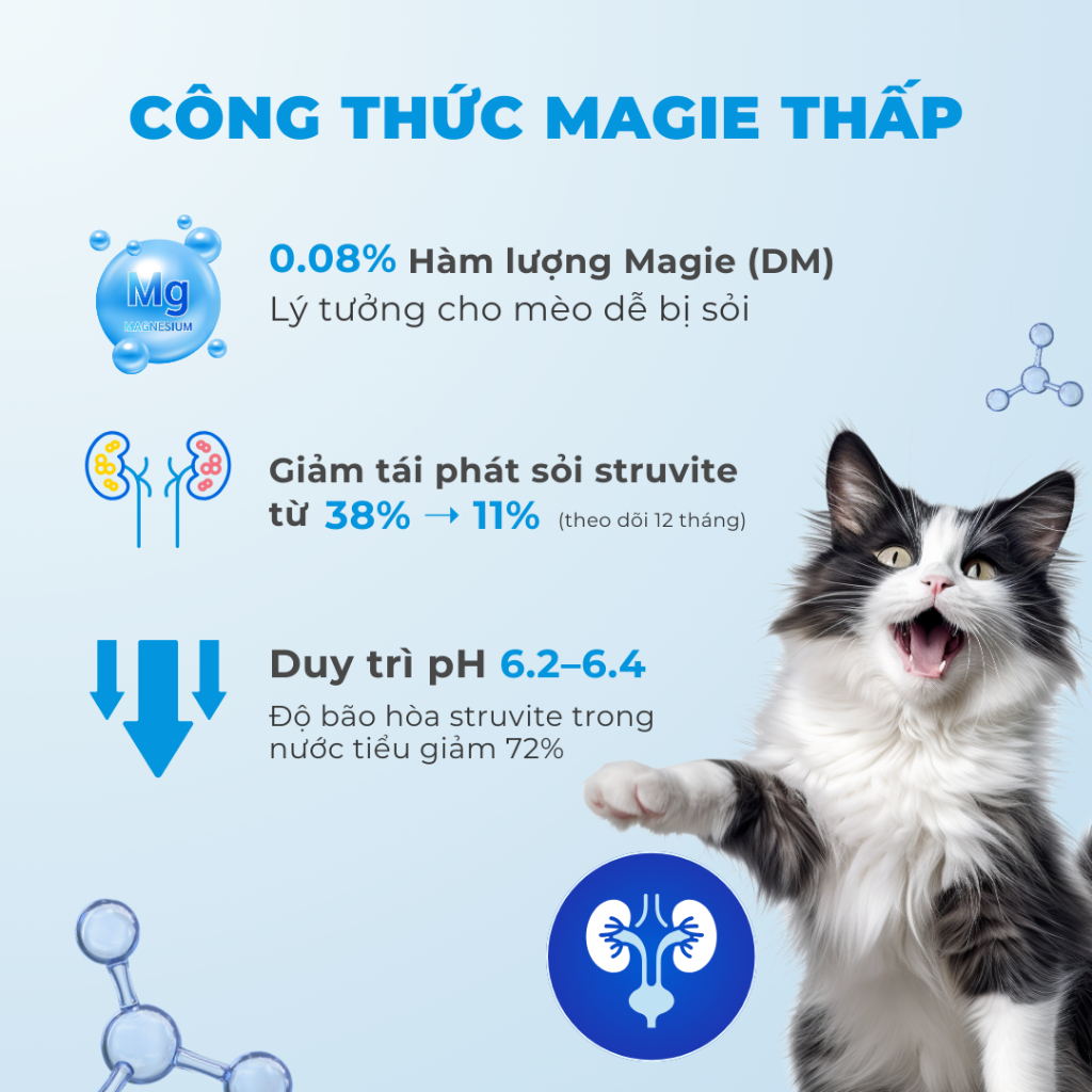 • Công thức ít Magie (0.08%): giảm 70% nguy cơ tái phát sỏi struvite.