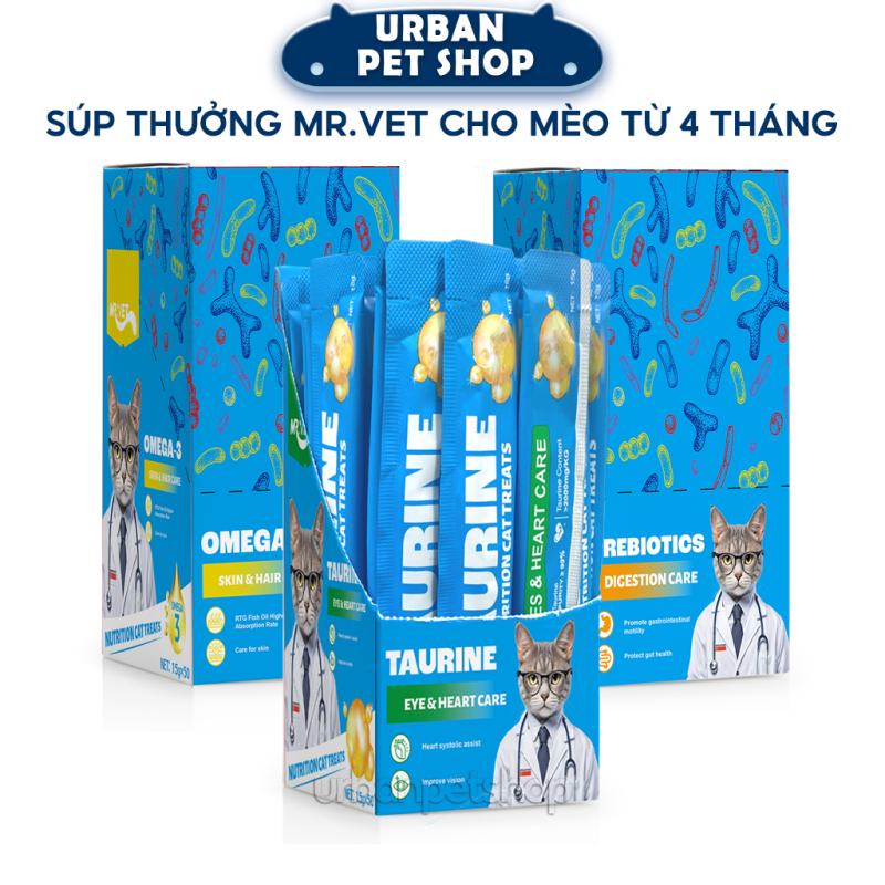 MR.VET Soup là sản phẩm súp dinh dưỡng cao cấp dành cho mèo, được phát triển bởi chuyên gia thú y Hàn Quốc. Công thức tập trung vào nhóm dưỡng chất thiết yếu giúp mèo khỏe mạnh hơn từ bên trong, đồng thời giữ được hương vị tự nhiên dễ ăn, phù hợp cả mèo kén ăn hoặc cần bổ sung độ ẩm hằng ngày.