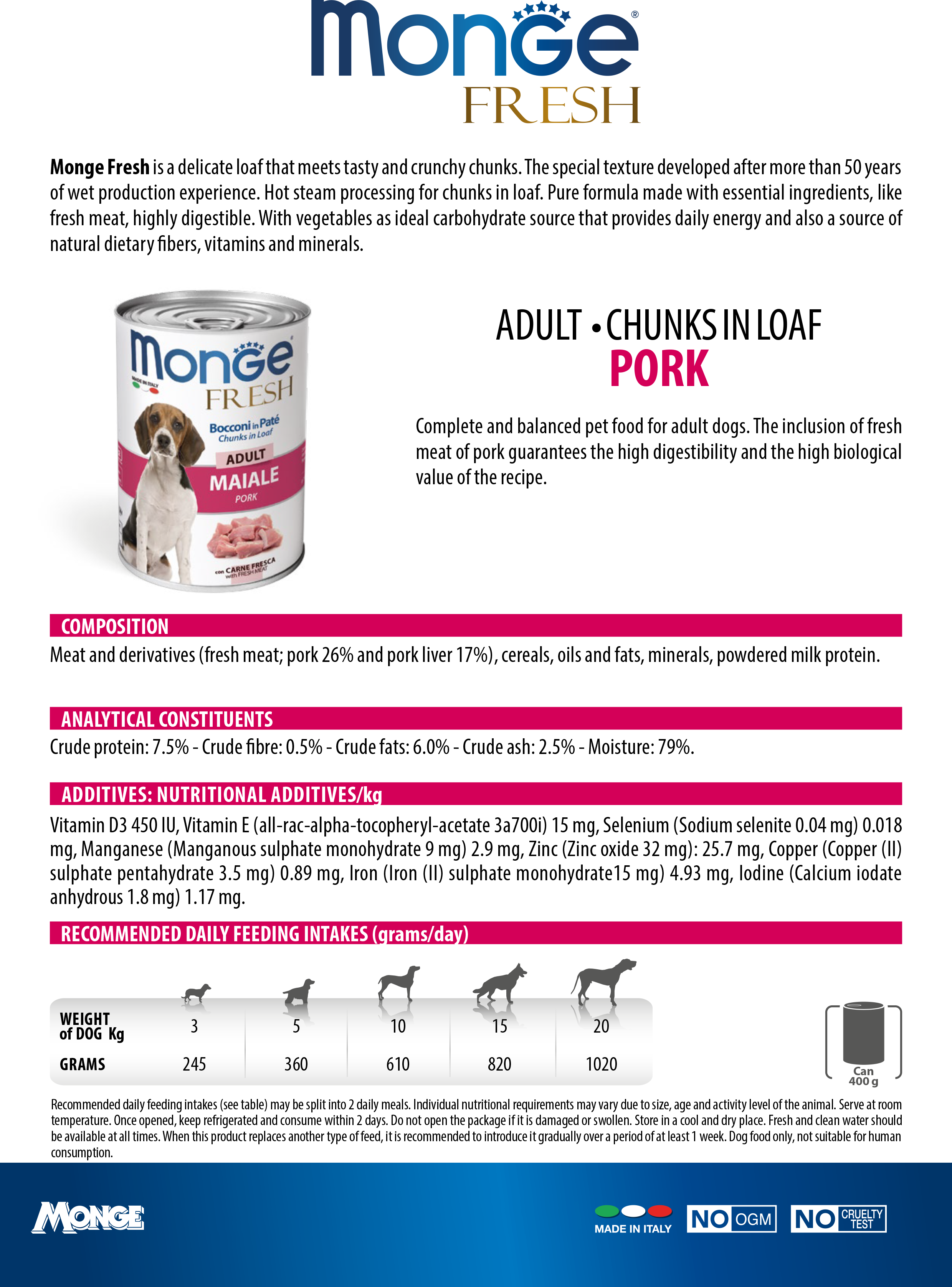 ☑️ Monge Fresh là món patê thơm ngon với những miếng thịt thơm ngon, được tạo ra theo công thức nguyên bản của Ý. Hoàn hảo cho những con chó nhỏ và như một phần thưởng ngon lành cho những con chó lớn hơn. Nhiều lựa chọn về hương vị - mọi người sẽ tìm thấy thứ gì đó đặc biệt cho thú cưng của mình ở đây.